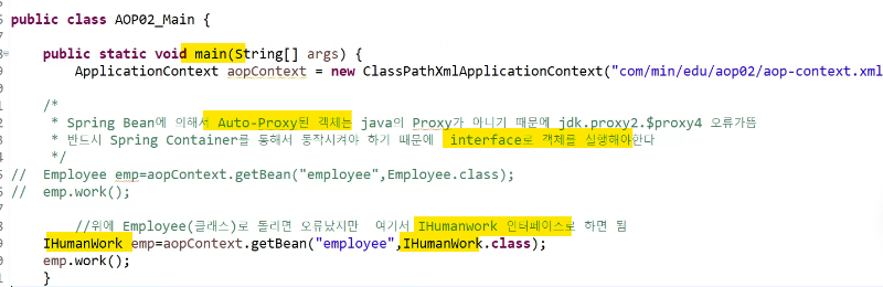 ->따라서 Spring Container의 Auto-Proxy가 아닌, Java의 Proxy가 동작 되도록 해줘야 한다