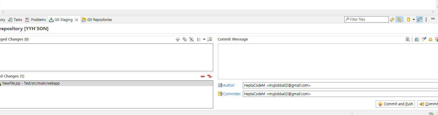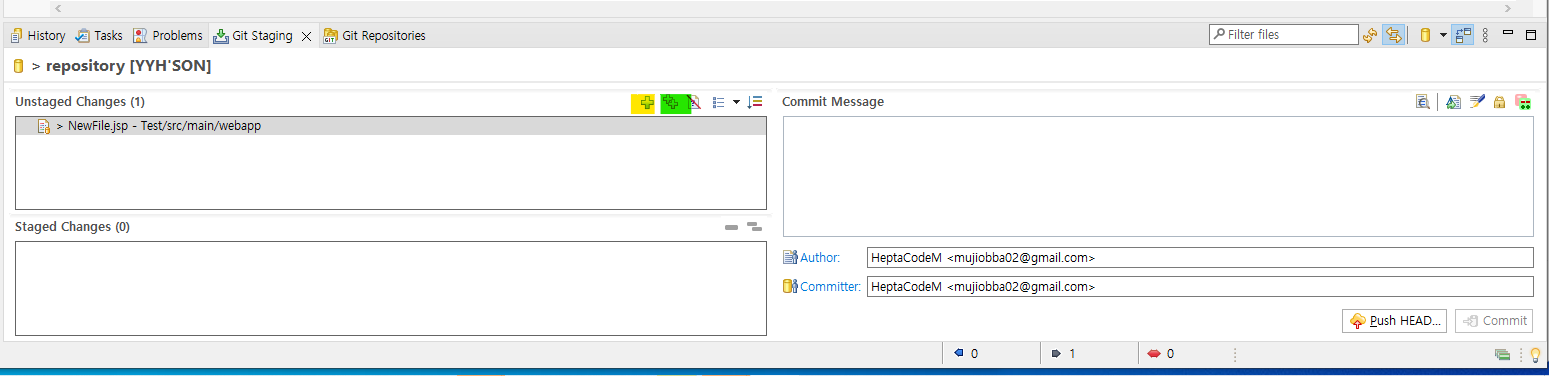 3. + 버튼으로는 Commit 할 파일을 개별로 선택할 수 있고