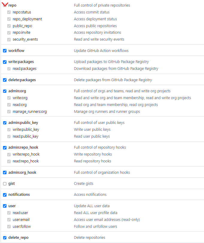 계정 주소명과 깃토큰을 넣고
