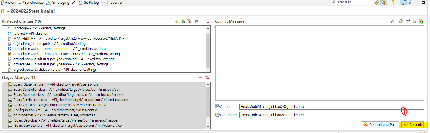 ++버튼으로는 수정한 파일 전부를 일괄 Commit 대상으로 만들 수 있습 니다.