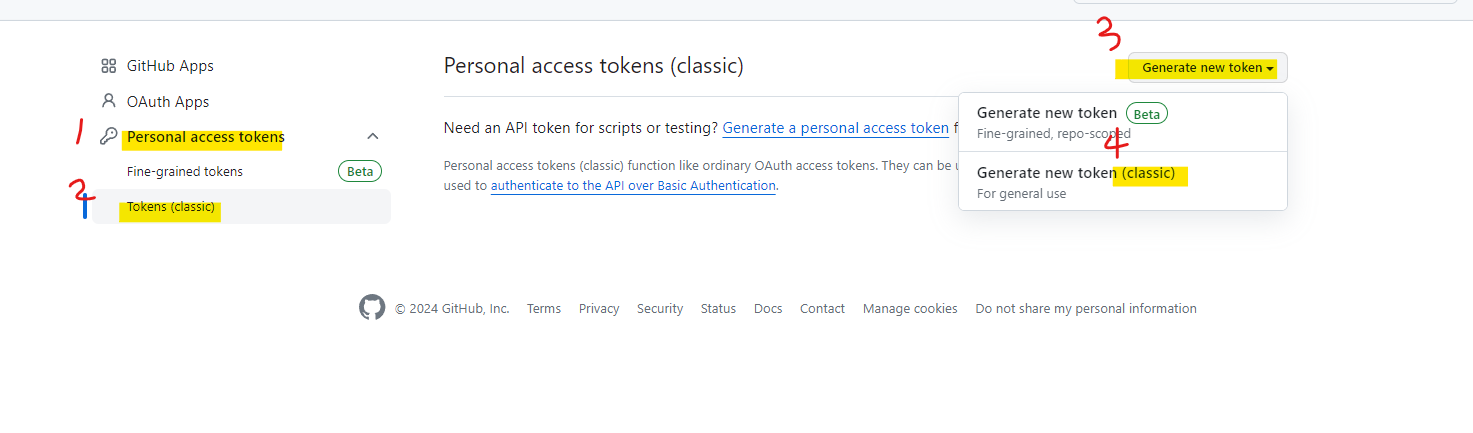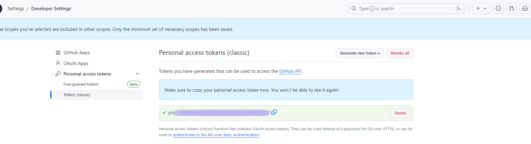3. classic token 생성 클릭