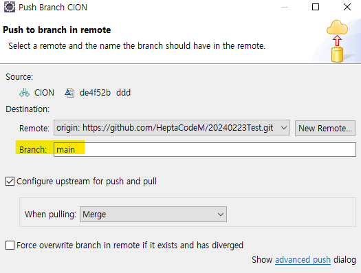 ** Push 할때 어느 Branch를 향해서 Push하는지 꼭 확인해주세요