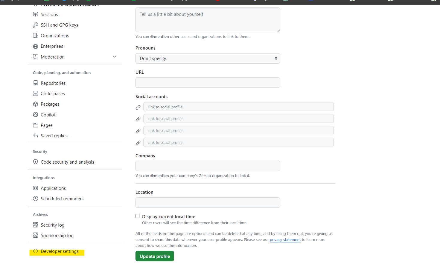 2. Developer settings