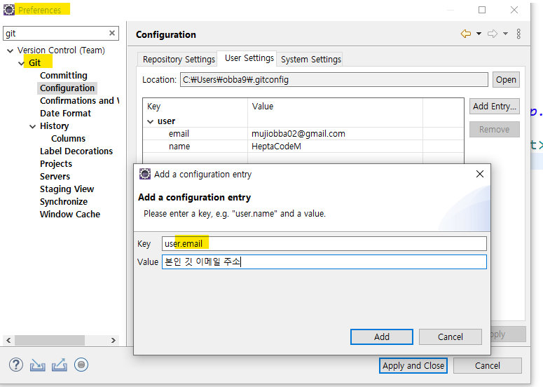 이클립스에 본인 Git 계정 정보 저장하기