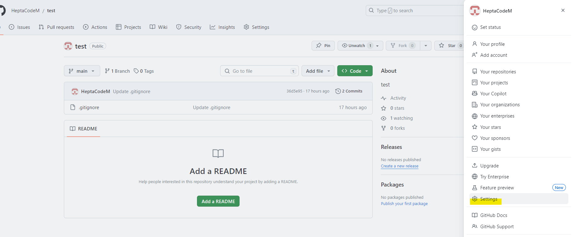 1. 우측 상단 프로필 사진 클릭 후 Settings
