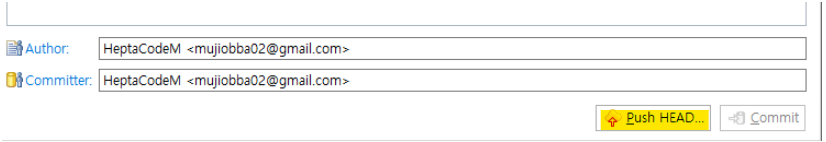6. Commit이 완료되면 Push HEAD 라는 버튼이 생성되는데 해당 버튼을 눌러 Git에 Push 합니다