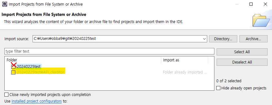 5. repostitory 명 (폴더명)은 제외하고 프로젝트만 체크해서 임포트하면 끝~